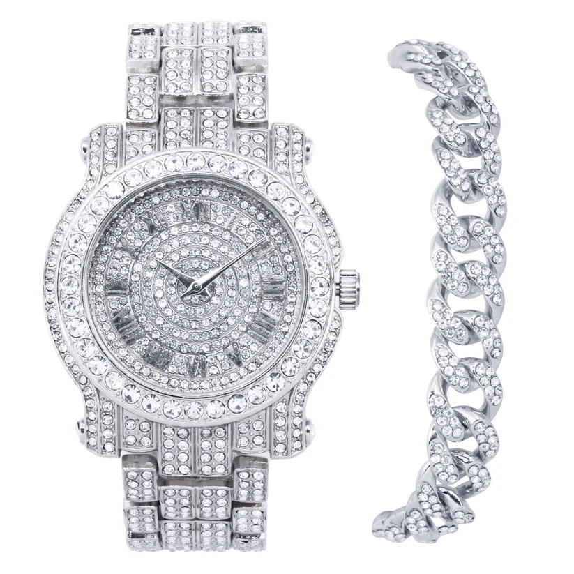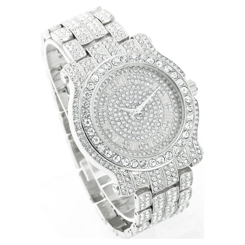 Our unique 45mm Classic Iced Out Watch is iced out from the case all the way down to the band with Cubic Zirconia crystals. Super shiny by appearance, this watch resembles many watches worn by rappers and popular artists in Hip Hop. We flood our watches with ice just like custom timepieces by popular luxury brands just to leave people guessing what brand it is. They look and feel expensive! Our watches are fully adjustable so that customers can remove the links to fit the size of their own wrists. Perfect for gifting during holiday season, our watches come packaged in luxury boxing with a pillow cushion and removable Ice Star hang tags. Not only do our watches look good on Men, but we design them so that they are attractive on all wrists, including unisex. Customer Service is very important to us. We back our product with a 15-Day Money Back Guarantee for all unworn watches in the same condition that they were received. We know you’ll love our product!